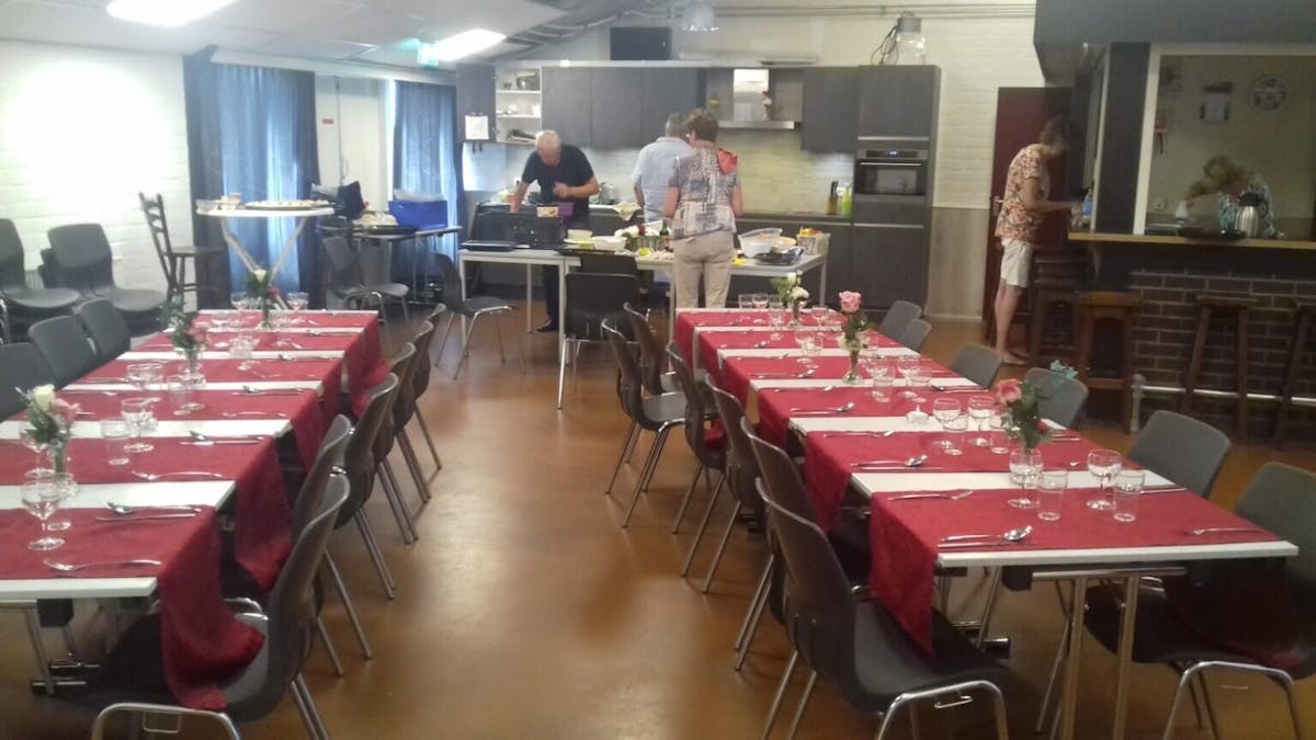 Vanaf 17:30 tot ongeveer 19:30 uur is het dan heerlijk eten en bijpraten.