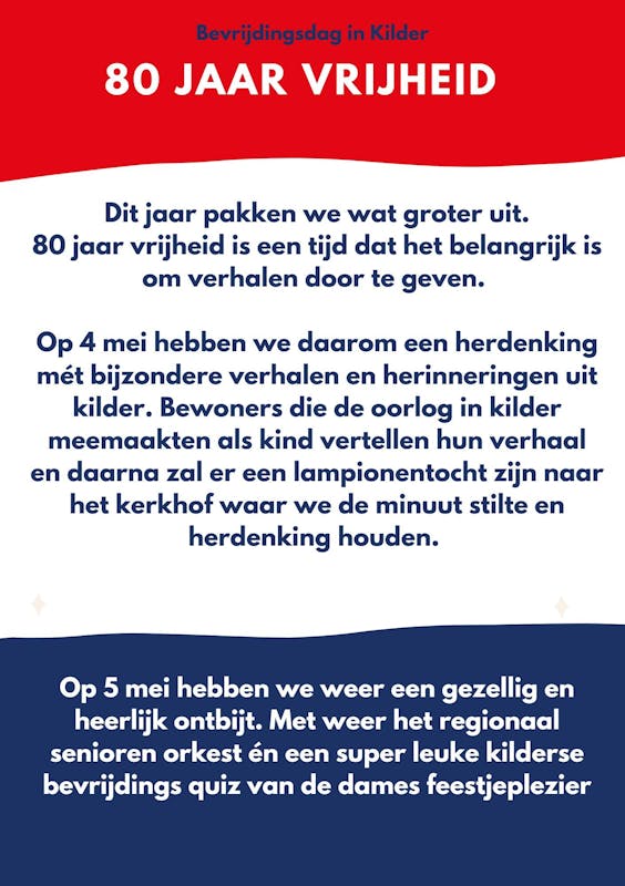 Mis het niet en vier samen met ons de bevrijding van Kilder! Kom je ook?