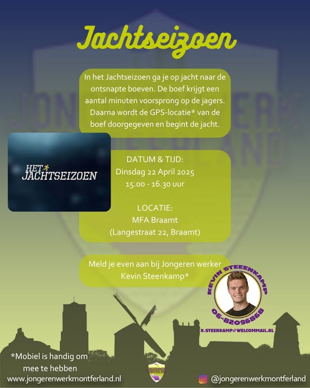 In het Jachtseizoen ga je op jacht naar de ontsnapte boeven π΅ββοΈ De boef krijgt een aantal minuten voorsprong op de jagers πββοΈ Daarna wordt de GPS-locatie* van de boef doorgegeven en begint de jacht π³