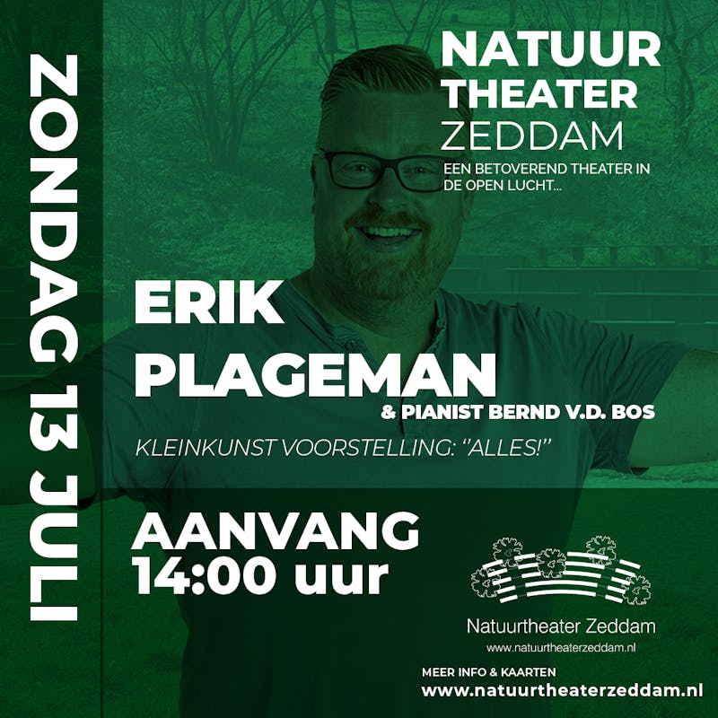 Op zondag 13 juli 14.00 uur speelt Erik Plageman samen met pianist Bernd van den Bos “Alles!” in het Natuurtheater Zeddam.