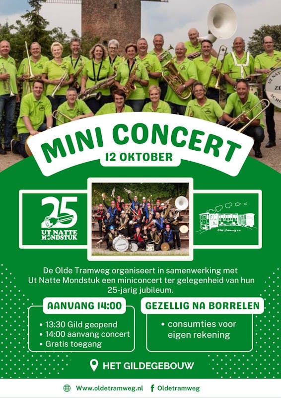 Kom zondag ook genieten van het miniconcert van Ut Natte Mondstuk in Gildegebouw, iedereen is van harte welkom!