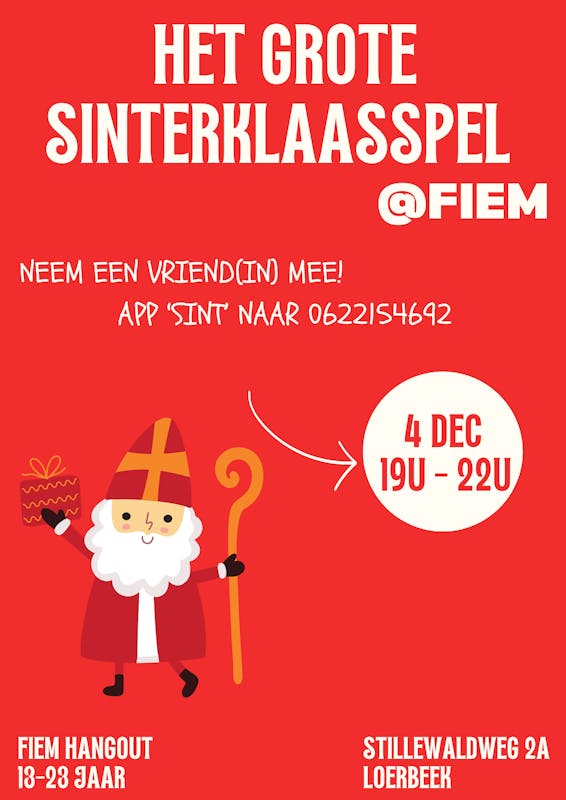 Laat even weten of je komt: app 'SINT' naar 0622154692, of mail 'SINT' naar .