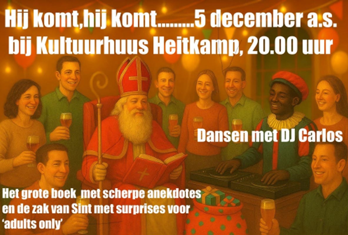 En om het feest helemaal compleet te maken wordt er gedanst op de muziek van ‘hoor wie klopt daar’- DJ Carlos. Makkers, staakt uw wild geraas en kom naar Heitkamp om Sinterklaas te vieren zoals dat alleen bij ons kan.