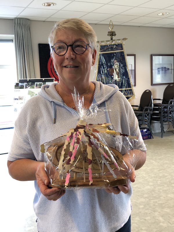 Louis overhandigde de trofee “vrijwilligersvereniging van het jaar” aan de Seniorenclub ‘Onder Ons’. Marian Drijver nam deze trots in ontvangst namens haar vereniging.