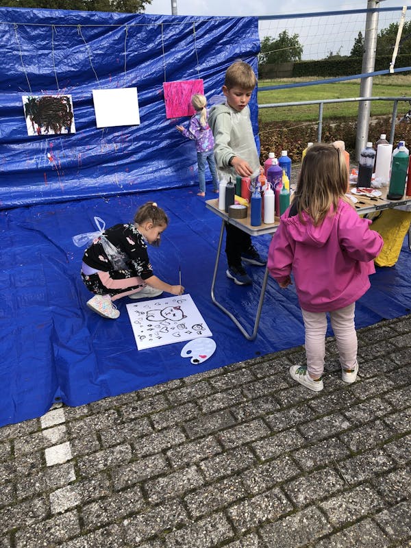 Buiten ’t Bosman huus stond een springkussen, was Birgin van de “Berenfabiek” aanwezig met verf. Kinderen konden “verf gooien” op doeken aan de wand en zo hun eigen kunstwerk maken, maar ook hun eigen kunstwerk schilderen.