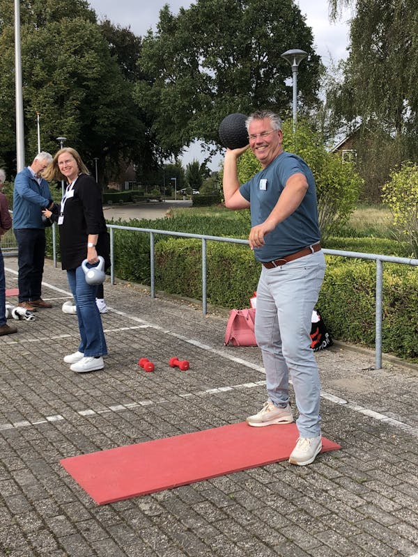 Body Fit organiseerde een Sportclinic en velen deden enthousiast mee. Er moest natuurlijk wel even gesport worden. Body Fit was ook heel enthousiast. Zij hebben de datum van de volgende Burendag al in de agenda gezet!! Wie wilde kon een proefrondje fietsen op de duofiets van de Fietsmaatjes. Binnen was het ook nog mogelijk om oud-hollandse spelletjes te doen en echt te schieten in de kelder. Even lekker tegen een bal trappen kon ook nog, net als een spelletje jeu de boules.