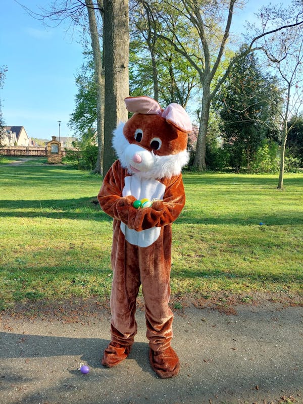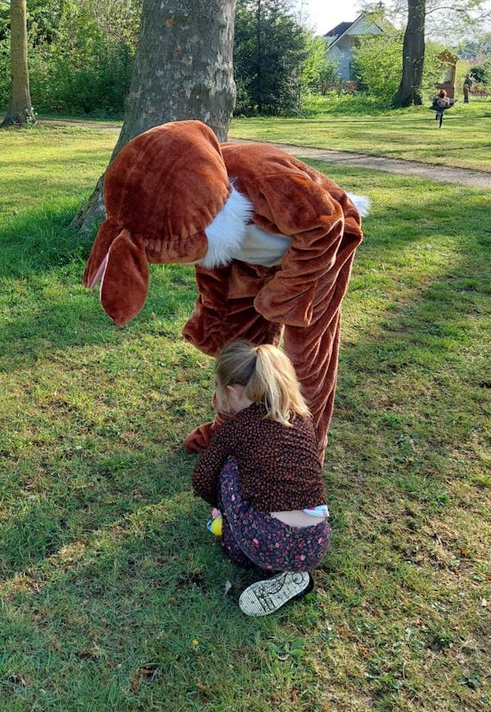 Vanmorgen, toen ik mijn honden uitliet, heb ik hem in het stadspark rond zien springen… 🐰 DE PAASHAAS ! 🐰 Hij was bezig om bontgekleurde eieren te verstoppen die een uurtje later door de kinderen uit de Touwslagersbaan en de Van Rooijenstraat gezocht werden. Elk gevonden ei was goed voor een klein cadeautje. De allerkleinste kindertjes vonden het niet helemaal pluis, omdat de paashaas een beetje op een beer leek. Gelukkig waren de moeders erbij om de kleintjes op te vrolijken.