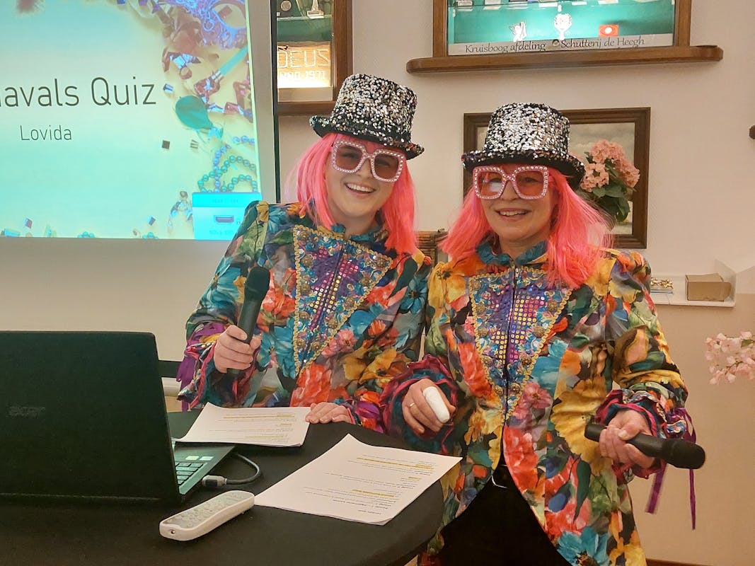De quiz die Suus en Pien in petto hadden, was dan ook afgestemd op dit thema. Algemene vragen, foto vragen met foto's uit de oude doos en muzikale vragen kwamen voorbij.De Lovida dames moesten af en toe diep in hun geheugen graven.
