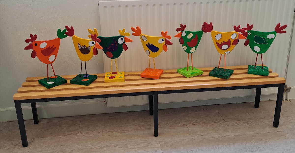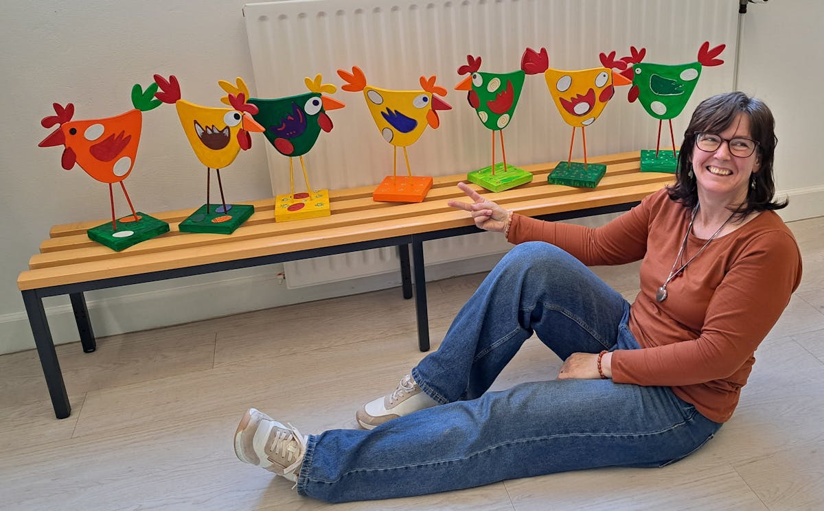 Met verf 🎨 en goede moed begonnen we aan het maken van de enige echte Paaskip van ’s-Heerenberg. Een prachtig bont beest. Het was weer reuze gezellig. Nadat we ook al van de tegeltjesworkshop hadden genoten waren de verwachtingen hoog. Maar ook dit keer was het weer geweldig. Op een van de foto’s zie je Ineke in pose met onze kippen. Ze heeft nog veel meer leuke ideeën in petto. Dus hou haar in de gaten… Bezoekhaar website hier