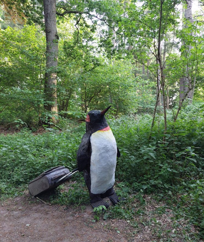 We zijn steeds nieuwsgieriger! Wat is er aan de hand met die pinguïn, die een koffertje achter zich aan trekt. Wil hij gaan vliegen of is hij op de vlucht voor de klimaatverandering?