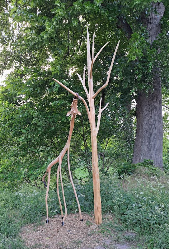 Even later een levensgrote sierlijke giraffe. Die, zoals blijkt overgebleven is uit de Fazanterie Buitenlust (1913-1923). Deze dieren moesten verhuizen naar Burgers Dierenpark in Arnhem. Maar enkele van hen wisten toen te ontsnappen en zwerven sindsdien nog rond in de omgeving van Huize Bergh.