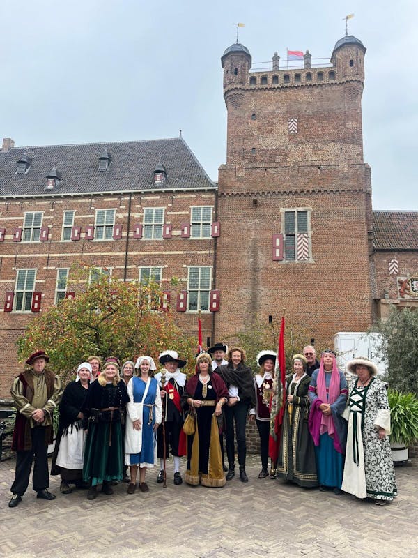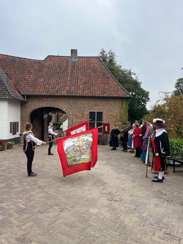 Daarna werd het stokje overgenomen door de vrijwilligers van het stadsmuseum, in prachtige kostuums, net als kennismaken met het St Antonius Gilde. In restaurant Heeren Dubbel hebben ze een historische brief van Maria van Nassau uit het bijzondere archief van Kasteel Huis Bergh voorgelezen. Daarna kreeg ik een vendelhulde op het kasteelplein en ben ik via de prachtige protestantse kerk doorgegaan naar Kultuurhuis Heitkamp.