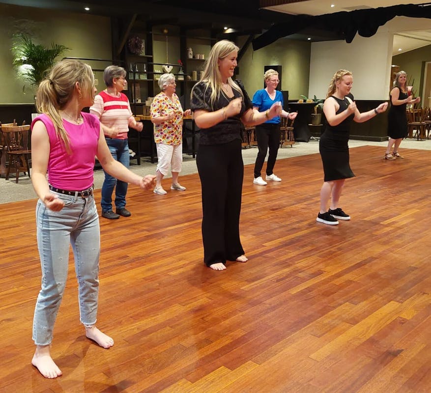 Fallon, inwoonster van Azewijn, en ook kermiskoningin, leerde ons heel relaxed, meerdere dansen, die zeker op de komende kermis te zien zullen zijn.