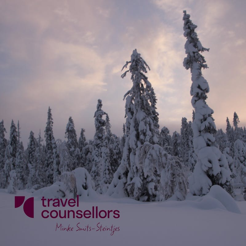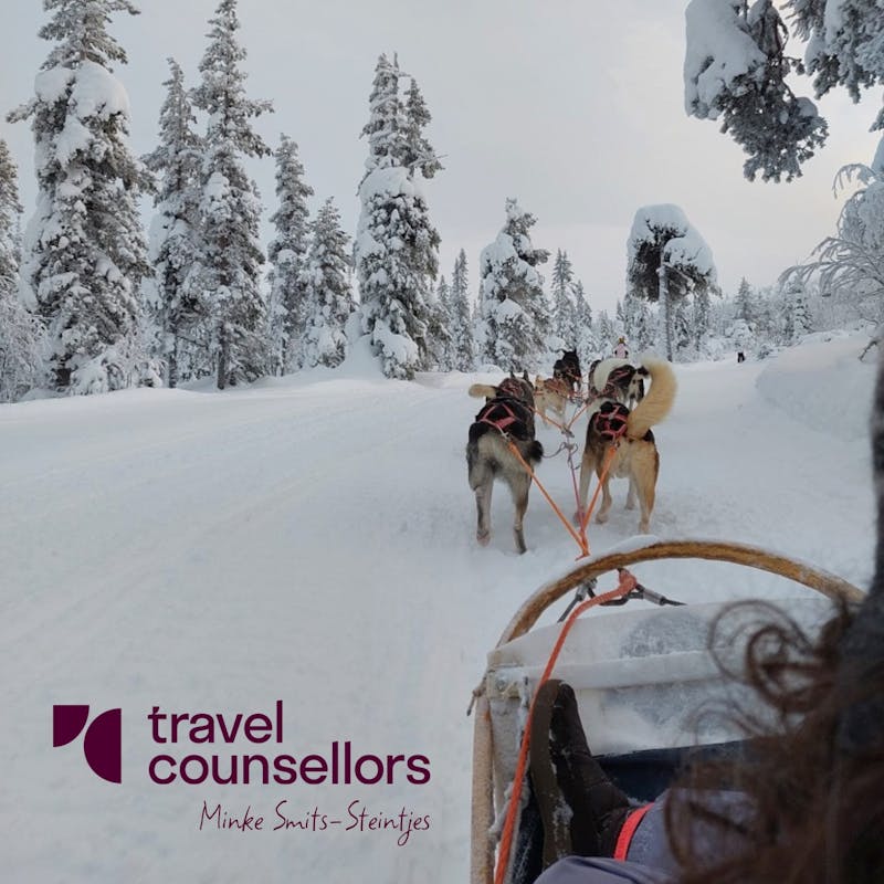 Stel je voor: je vliegt comfortabel boven witte landschappen, rijdt vervolgens door deze uitgestrekte witte landschappen en overnacht op een plek die zo uit een sprookje komt. Je maakt wandelingen terwijl de sneeuw onder je voeten kraakt, je gaat op avontuur met husky's, op een sneeuwscooter en ziet met een beetje geluk het magische noorderlicht boven je dansen...