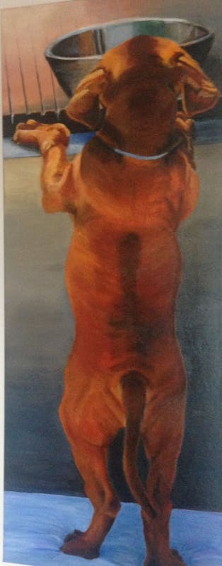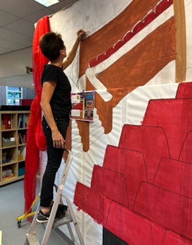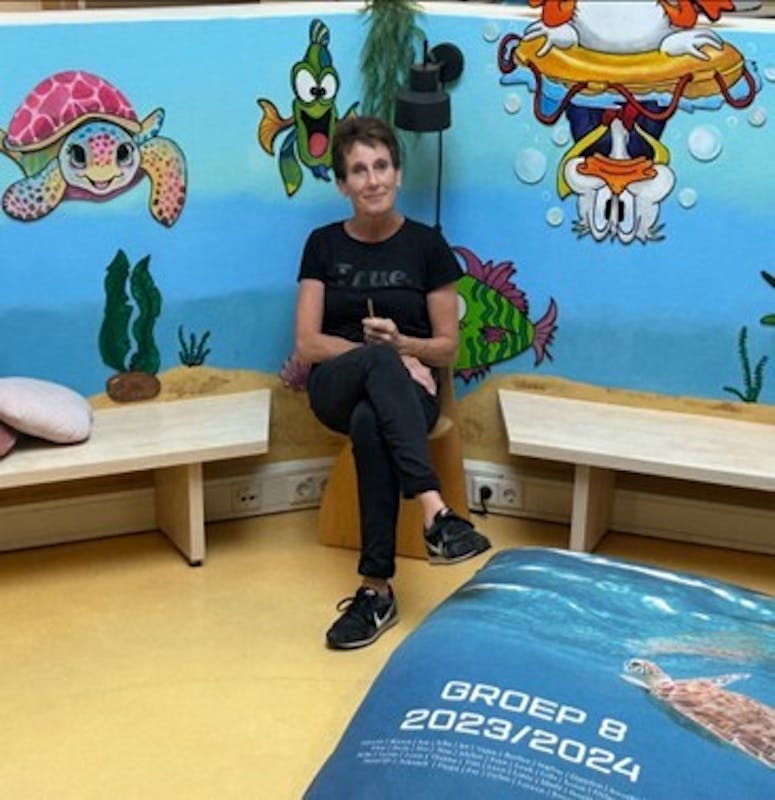 Op het moment is ze bezig, samen met anderen, om het decor van de musical van groep 8 te maken. Samen met de kinderen wordt het ontwerp gemaakt. Dit doet ze als hobby, in haar vrije tijd, evenals de creatieve voorbereidingen voor het fluisterwoud tijdens het Mechteld ten Ham Weekend en alsof het nog niet genoeg is…. schildert ze ook nog. Zie foto van de hond, muis en haan. Als ze nog eens zou kunnen kiezen had ze zeker een creatief beroep gekozen. Ondanks dat het dat niet is geworden, weerhoudt het haar er niet van om met haar huidige werk tevreden te zijn.
