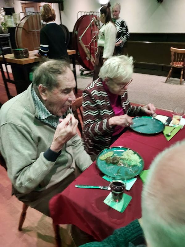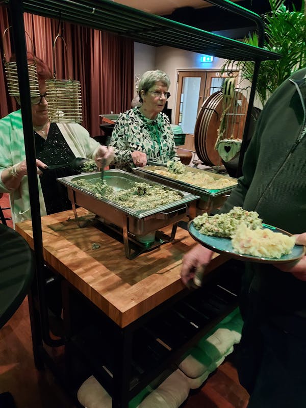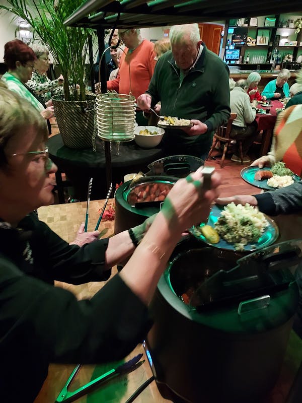 Een samenzijn vol verrassingen. Vandaag, 19 november, vond er weer een fijne avond plaats in het Aschwinhuus te Azewijn. De geur van een verrukkelijk stamppot buffet vulde de lucht. De vrijwilligers hebben zich uit de naad gewerkt voor maar liefst 44 gezellige gasten. Met een leuk voorgerecht en een verrassend toetje werd dit feestmaal compleet gemaakt.