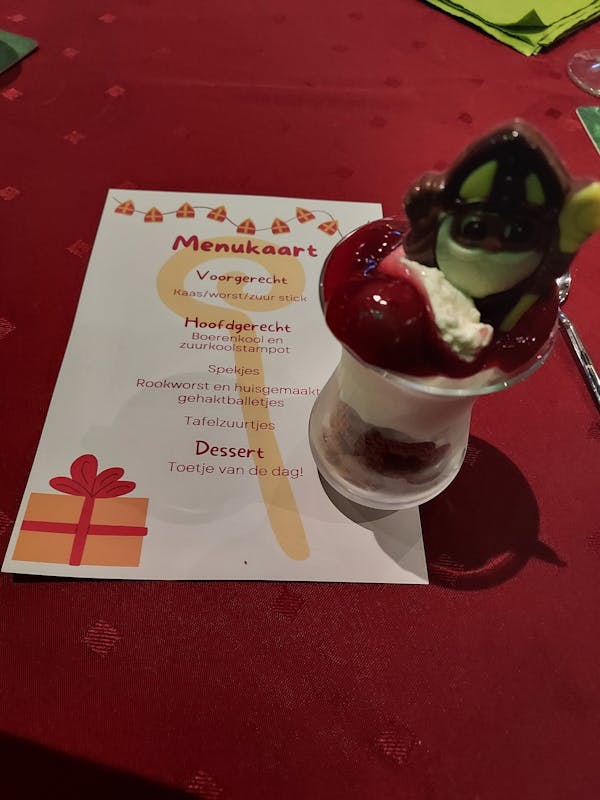 Boodschap van de avond Wat een gezelligheid! Op naar het volgende feest: het kerstdiner op 10 december. Alle gasten worden hiervoor uitgenodigd. Niemand blijft er thuis. Zorg dat je erbij bent, dit wil je niet missen. Kom, eet en ontdek de warmte van onze gemeenschap. De mooiste gesprekken ontstaan hier.