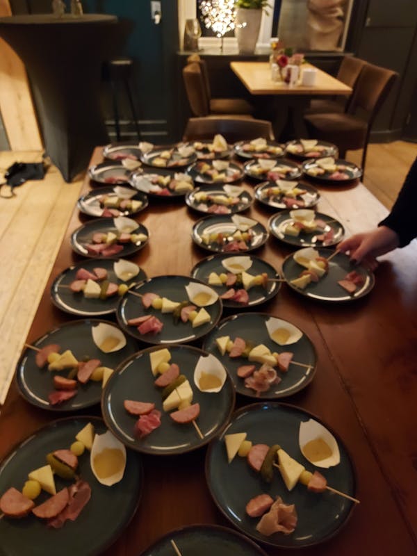 Wat stond er op het menu? Denk aan een kleurrijke stick met kaas, augurk, worst en een amsterdams uitje. Boerenkool en zuurkool in buffetvorm, aangevuld met spekjes, tafelzuur, gehaktbal en rookworst? Als klap op de vuurpijl, een hemels Monchou dessert.