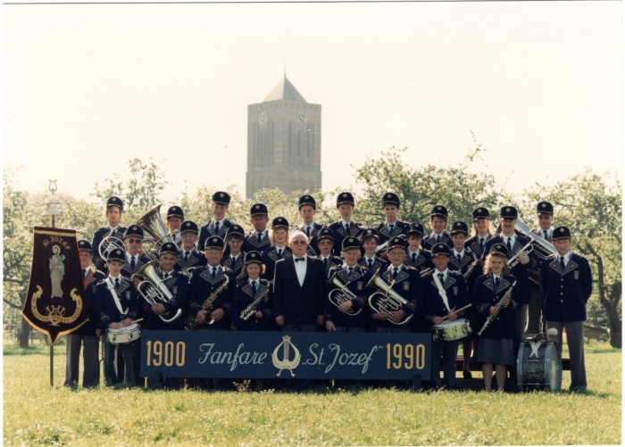 De fanfare in 1990 tijdens het 90-jarig jubileum.