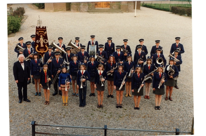De fanfare in 1981 met het tweede uniform.