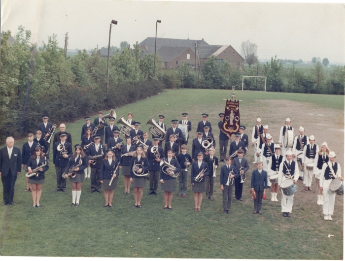 De fanfare in 1975 met het eerste uniform.